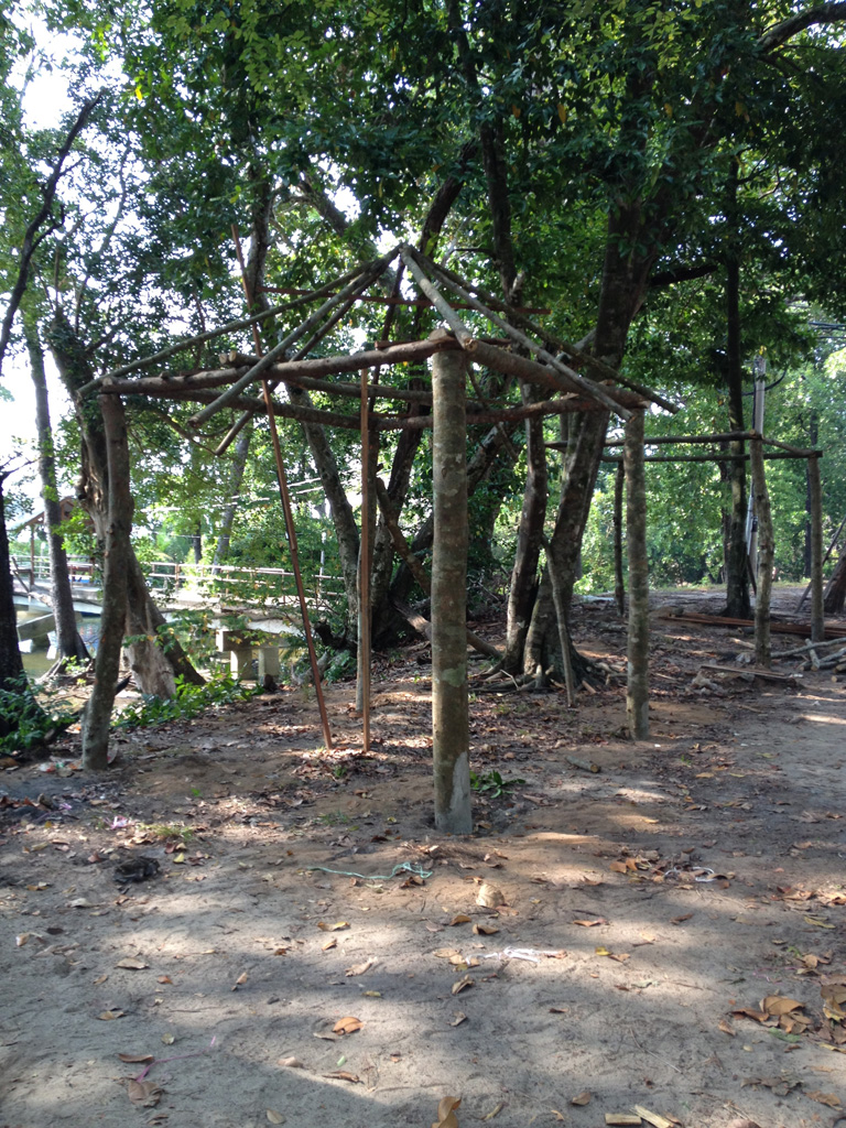 is our 2nd work project as part of the holistic realization process for Life in the Woods as a HEIGRENS experiment, a voyage of spiritual discovery, and manual for self-reliance using natural resources from the surroundings and blending the artificial constructs in harmony with nature. The spiritual intention of this project is 'The Work Plus'.  The Gazebos is part of the complementary conception of a natural mystic Eagle-Biawak dragon-like conceptual being with its "head" or "gate" at the beach and facing the sea and a long bridge body over the Paya river and ending at the 3 gazebos as part of the mystical being's tail.  The bridge is to be lightened at night with 2 rows of colored bulbs along both the left and the right sides of the bridge to give a beautiful mystical night life experience in the area surrounding the "Walden Ponds".